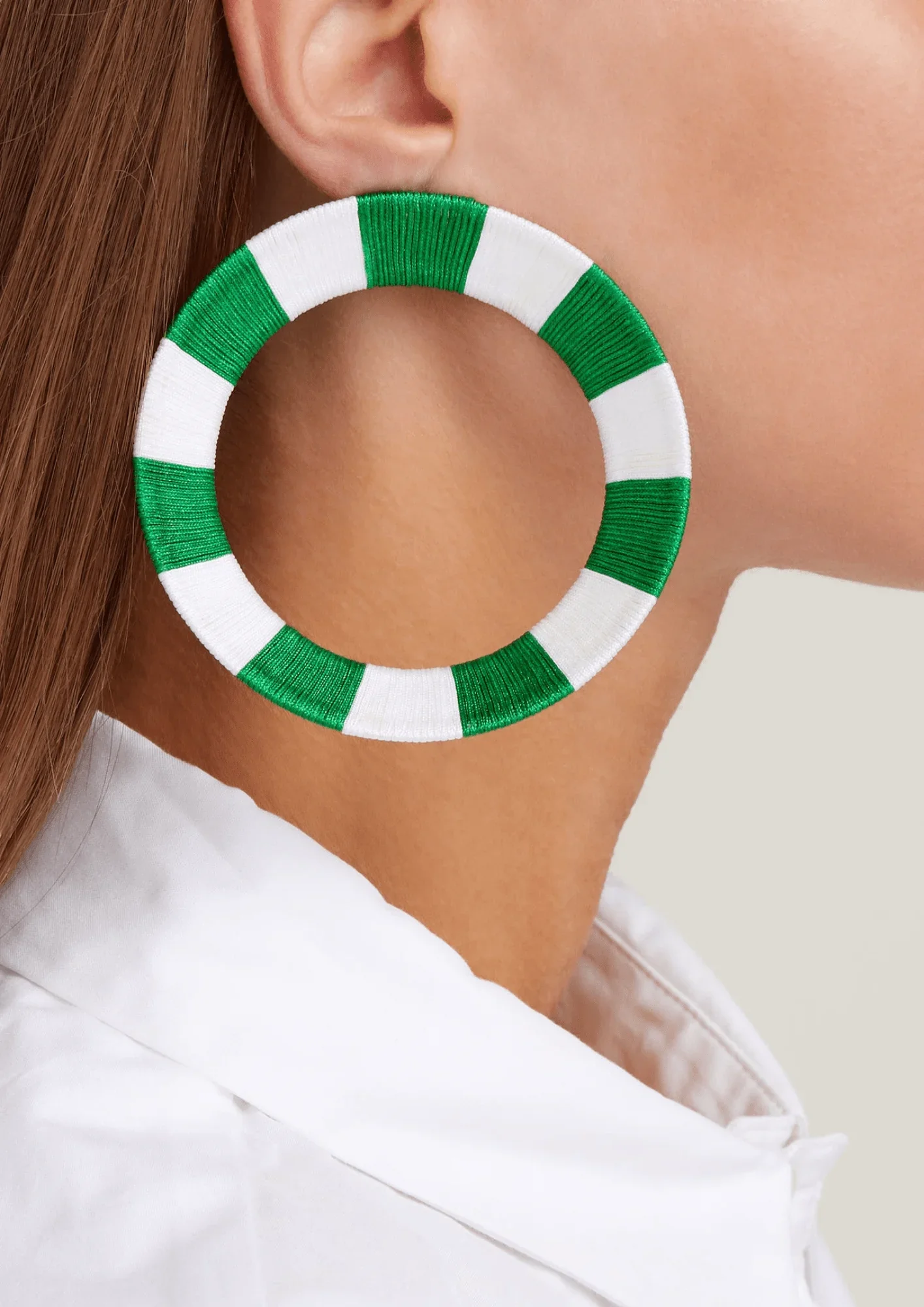 GREEN STRIPED HOOP EARRINGS