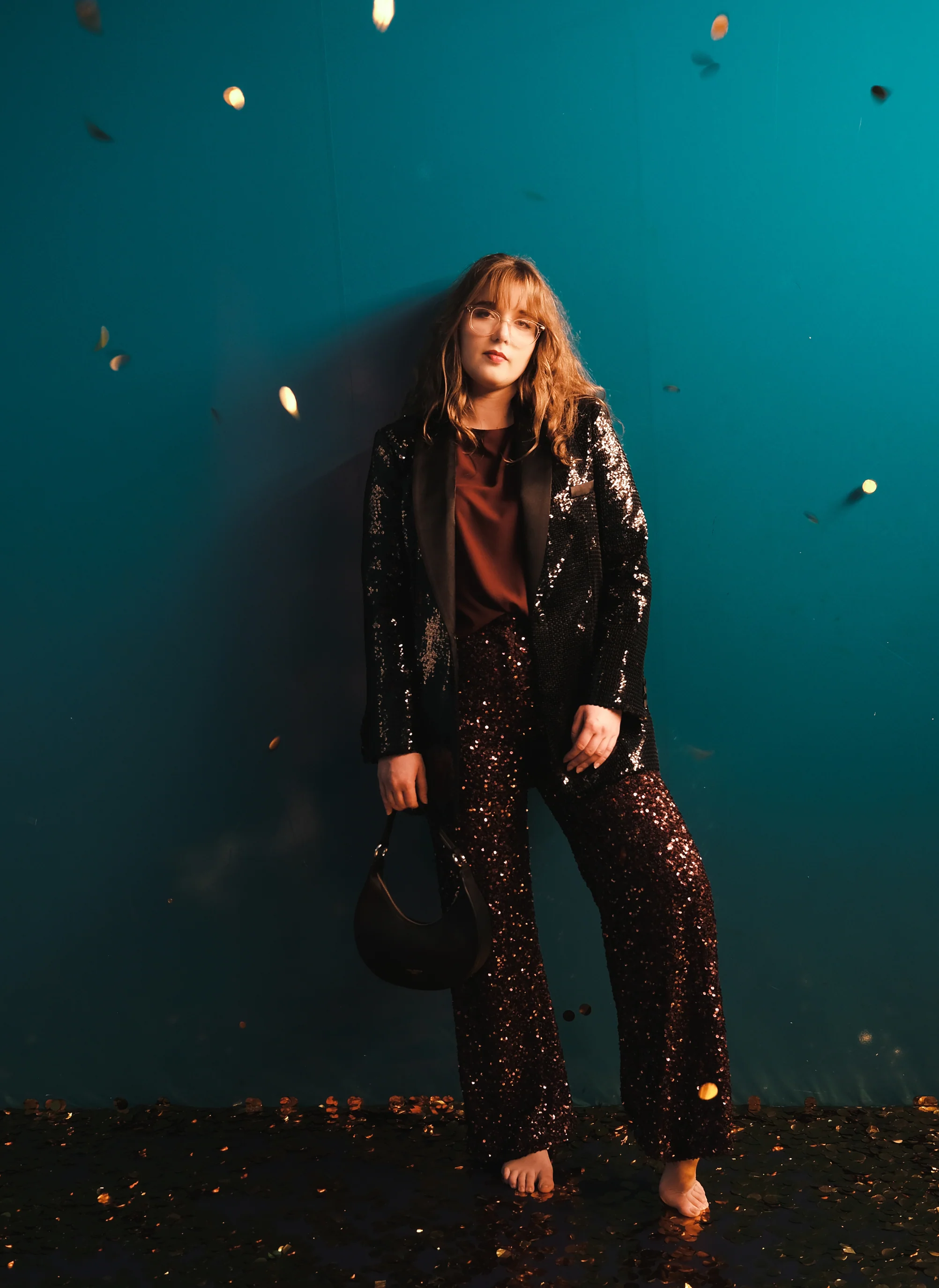 SEQUINED WID-LEG PANTS
