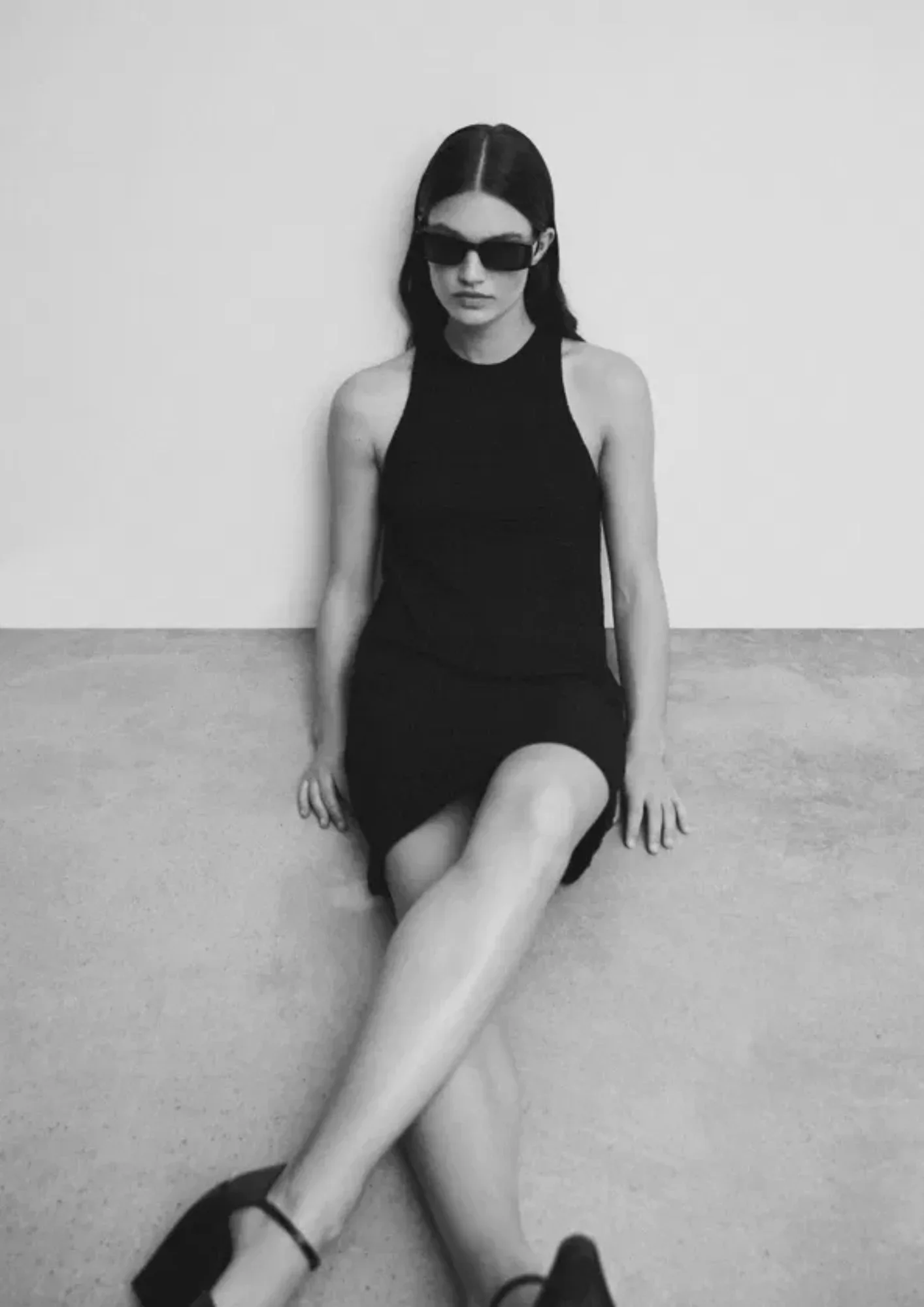 BLACK TEXTURED MINI DRESS
