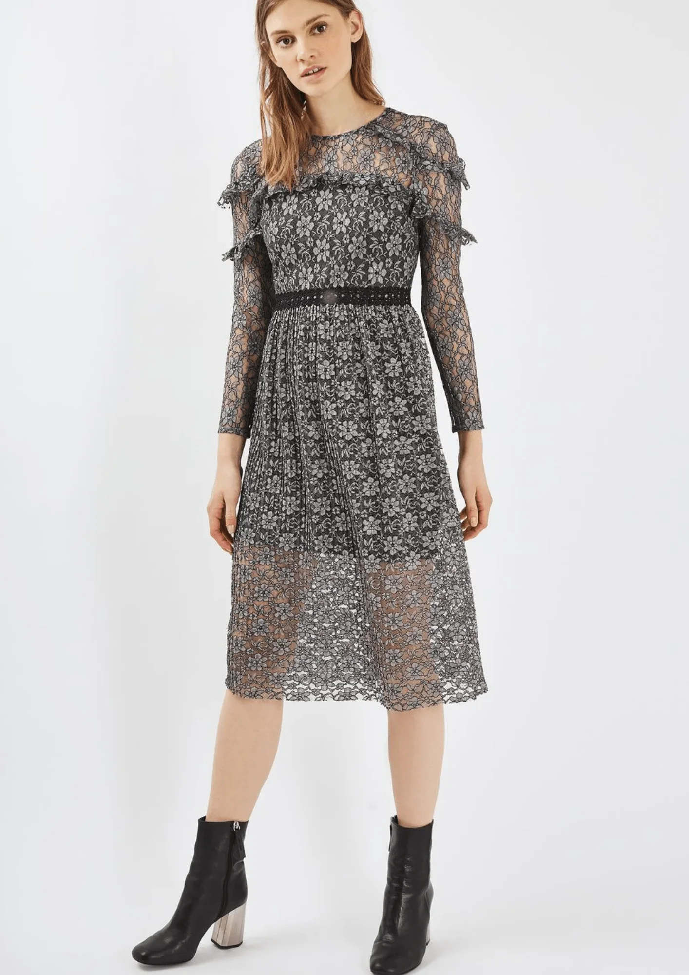 GREY LACE MIDI DRESS
